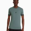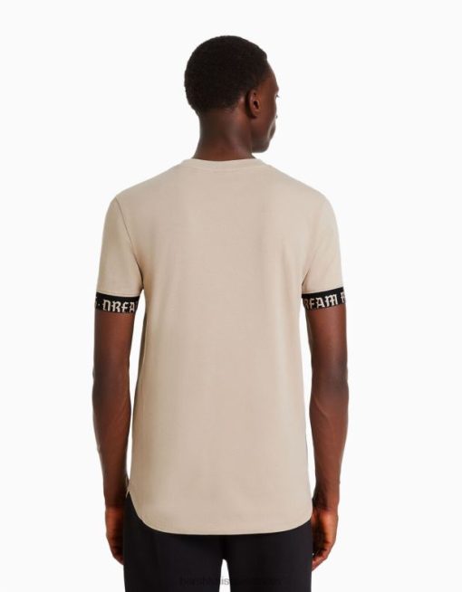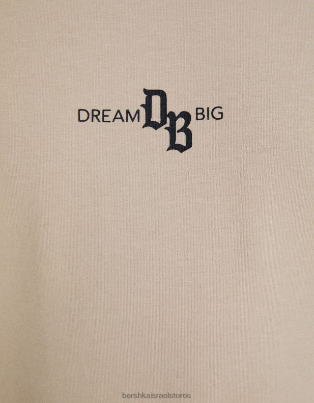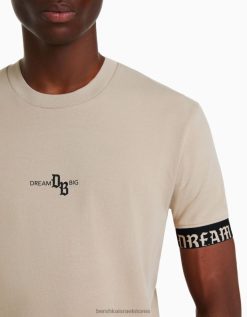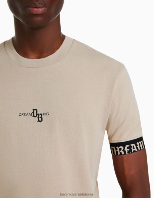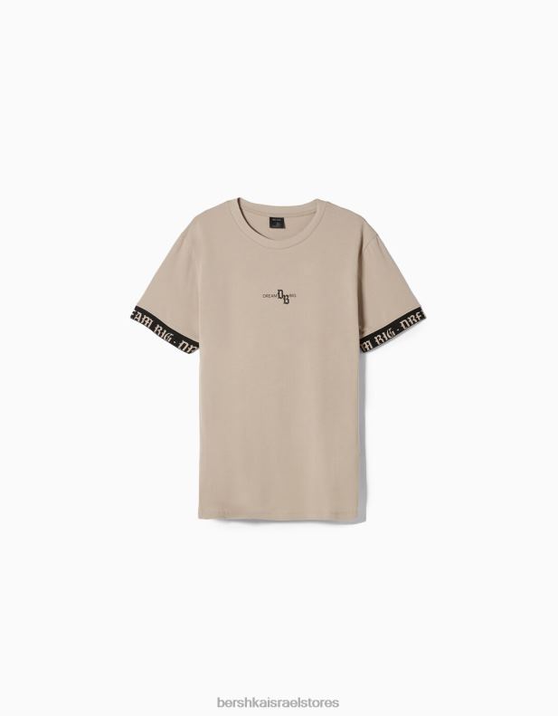 גברים חולצת טריקו שרוולים קצרים בכושר שריר עם פירוט פסים בז’ 2L6JD2690 Bershka הַלבָּשָׁה