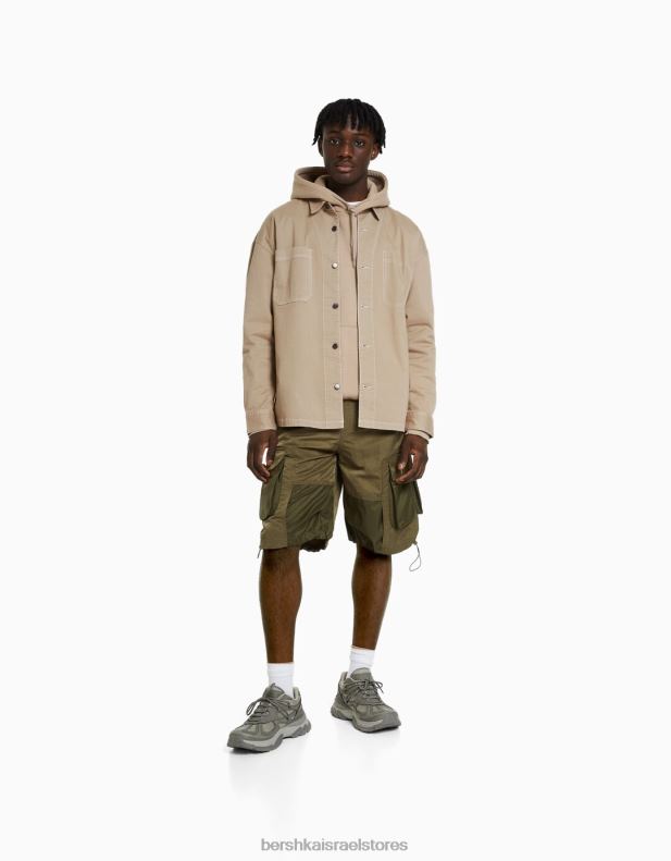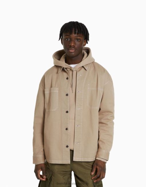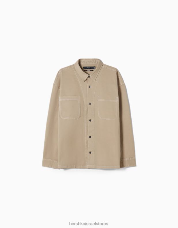 גברים חולצת כותנה חוט ניגודי בִּלעָדִי 2L6JD2936 Bershka הַלבָּשָׁה
