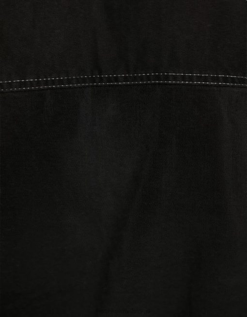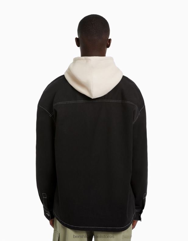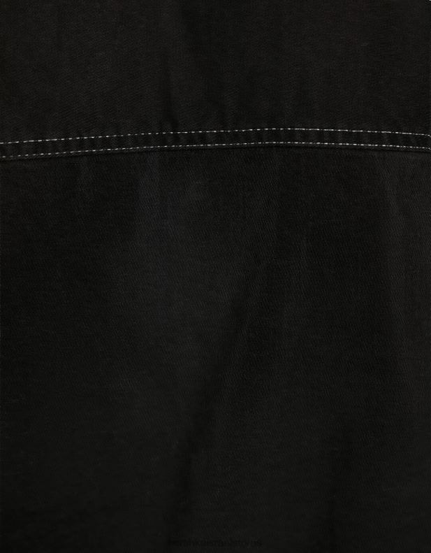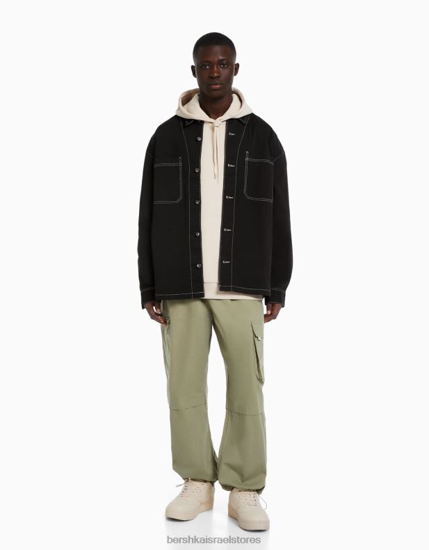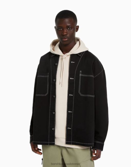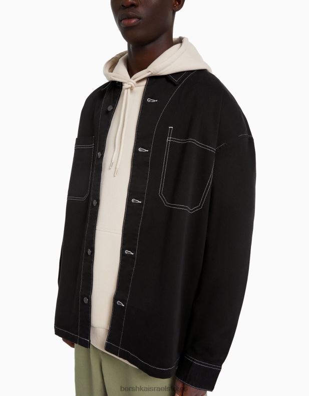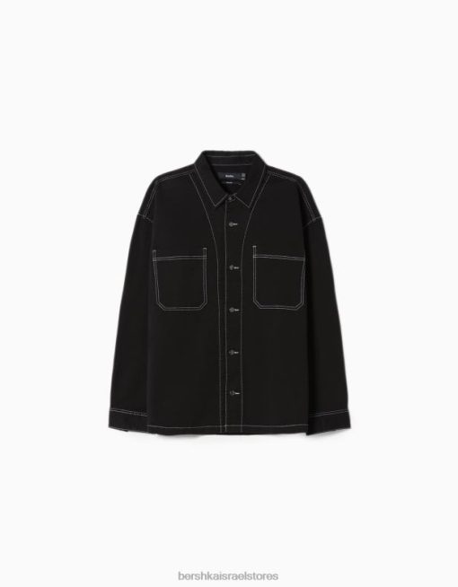 גברים חולצת כותנה חוט ניגודי שָׁחוֹר 2L6JD2937 Bershka הַלבָּשָׁה