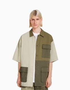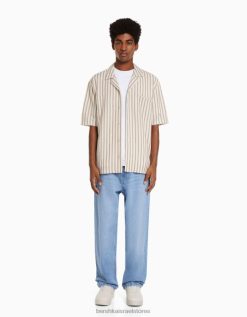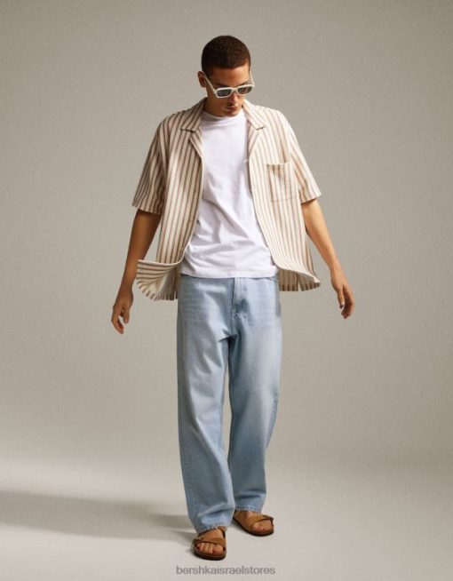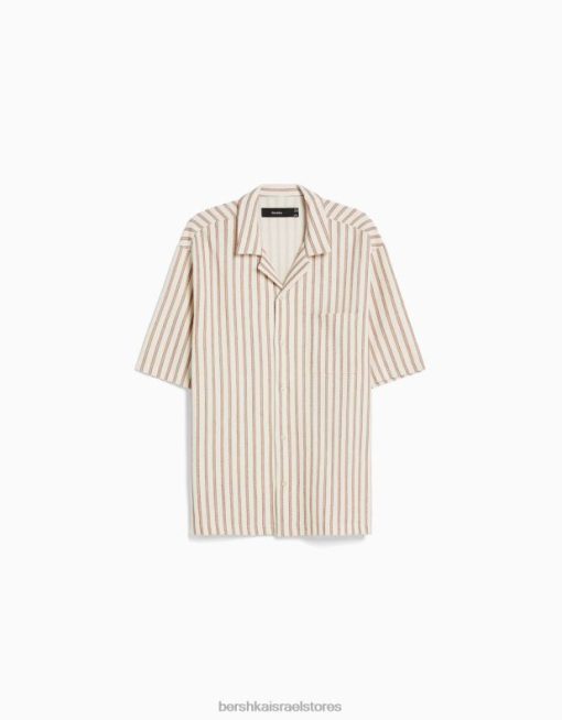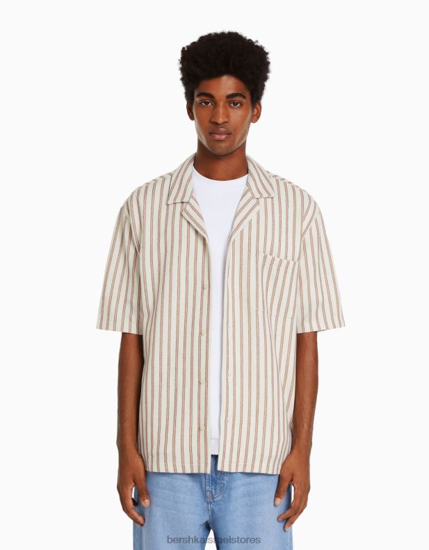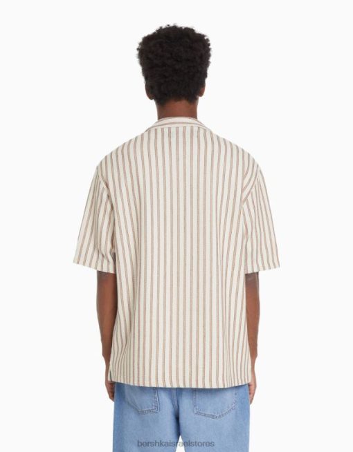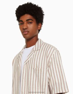 גברים חולצת פסים כפרית עם שרוולים קצרים נוֹפֶך 2L6JD2927 Bershka הַלבָּשָׁה