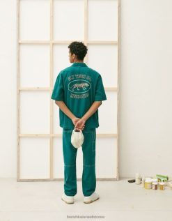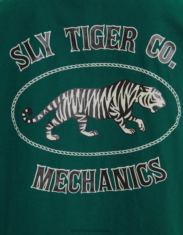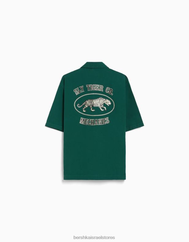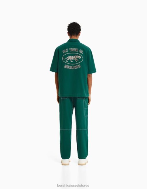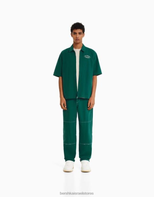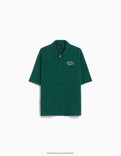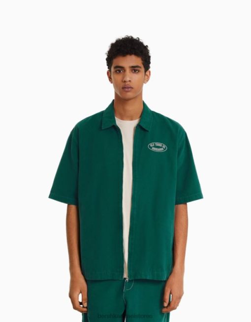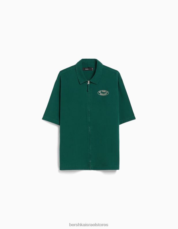 גברים חולצת קנבס עם שרוולים קצרים עם רוכסן ירוק 2L6JD2861 Bershka הַלבָּשָׁה