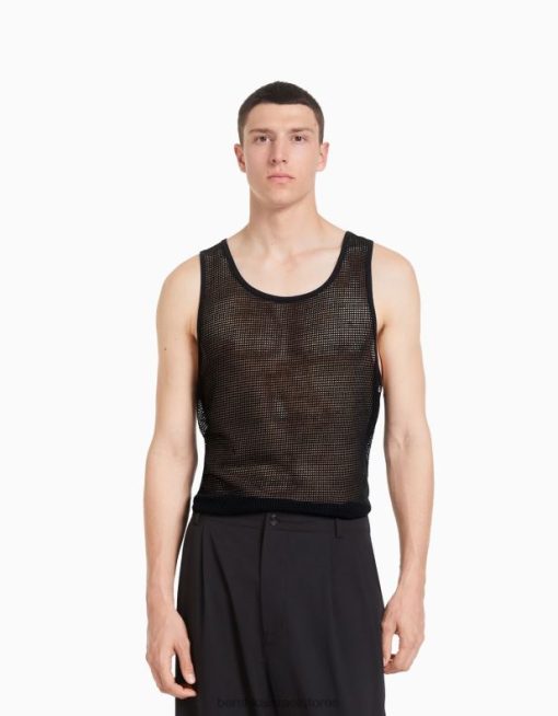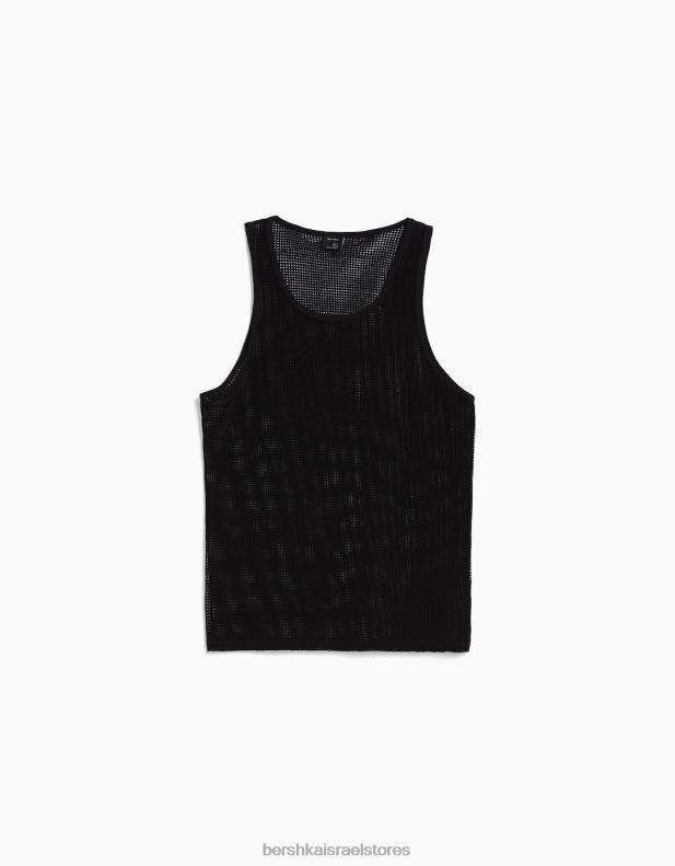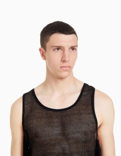 גברים חולצת רשת כפרית עם רצועות שָׁחוֹר 2L6JD2622 Bershka הַלבָּשָׁה