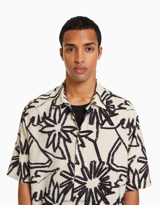 גברים חולצת שרוולים קצרים בהדפס כפרי אַחֵר 2L6JD2892 Bershka הַלבָּשָׁה