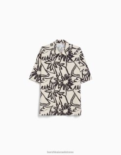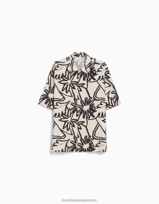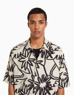גברים חולצת שרוולים קצרים בהדפס כפרי קרם 2L6JD2890 Bershka הַלבָּשָׁה