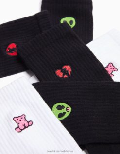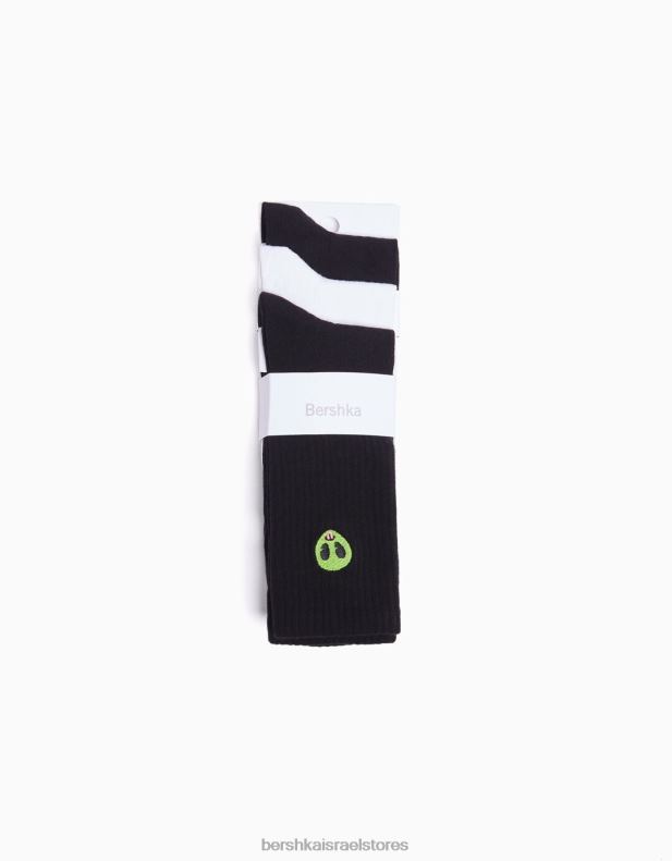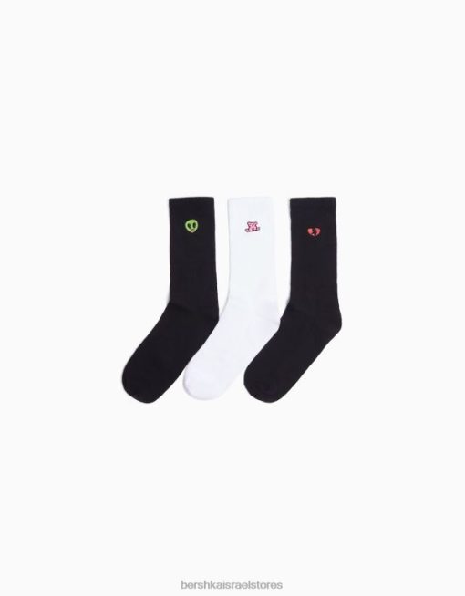 גברים מארז של 3 זוגות גרביים רקומים שָׁחוֹר 2L6JD3420 Bershka אביזרים