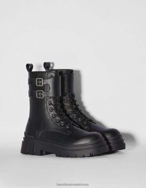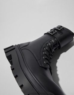 גברים מגפי שרוכים עם אבזמים שָׁחוֹר 2L6JD3574 Bershka הַנעָלָה