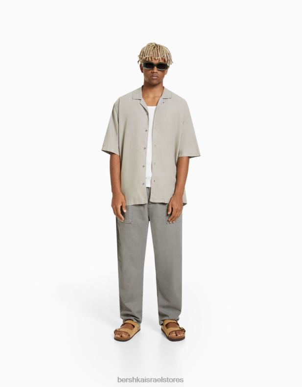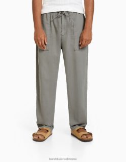 גברים מכנסיים כפריים בגזרה רפויה אפור 2L6JD3211 Bershka הַלבָּשָׁה