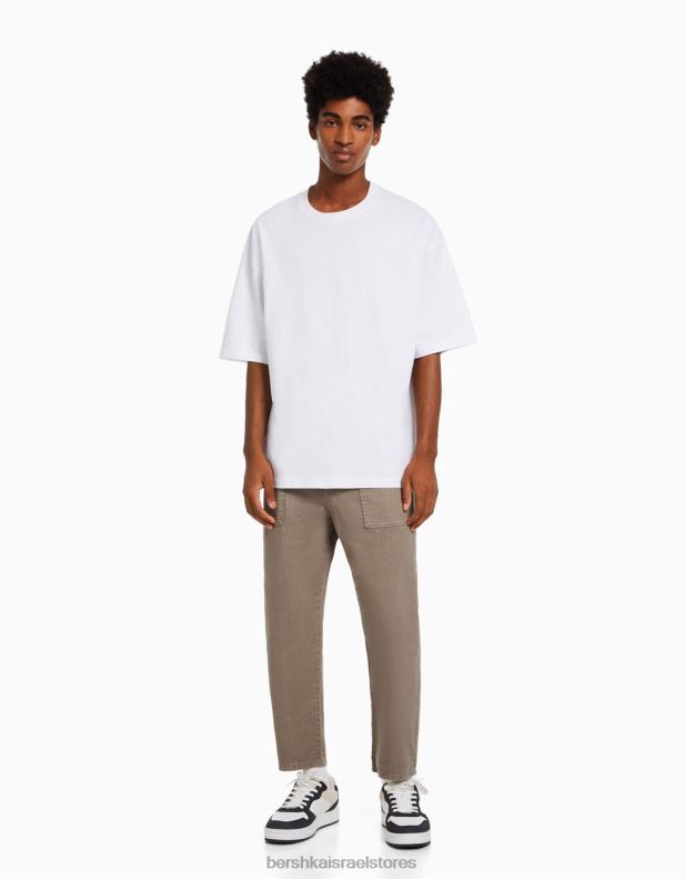 גברים מכנסיים כפריים בגזרה רפויה גָמָל 2L6JD3212 Bershka הַלבָּשָׁה