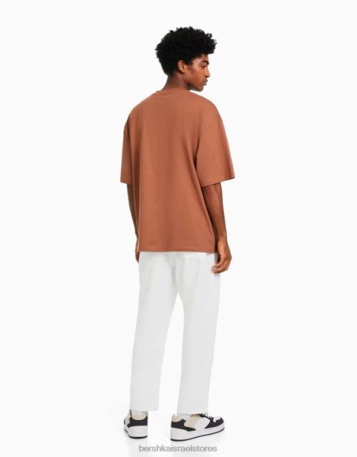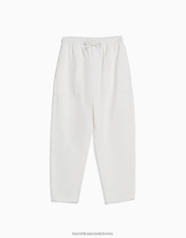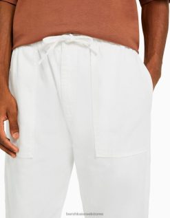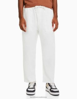 גברים מכנסיים כפריים בגזרה רפויה לבן 2L6JD3213 Bershka הַלבָּשָׁה