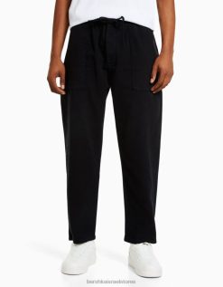 גברים מכנסיים כפריים בגזרה רפויה שָׁחוֹר 2L6JD3214 Bershka הַלבָּשָׁה