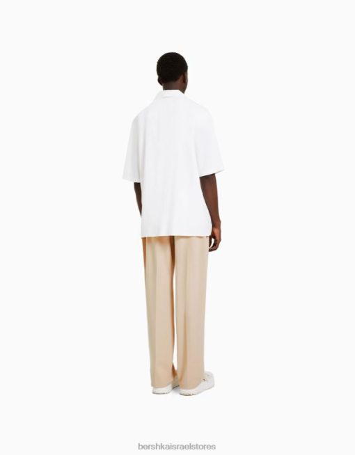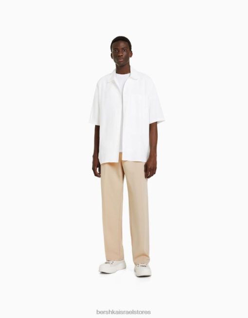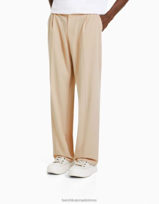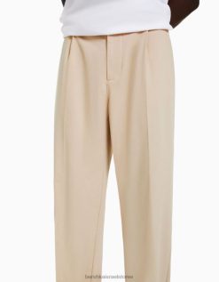גברים מכנסיים מחויטים בסגנון ג’וגר בגזרה רחבה חוֹל 2L6JD3266 Bershka הַלבָּשָׁה