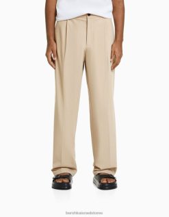 גברים מכנסיים מחויטים בסגנון ג’וגר בגזרה רחבה חוֹל 2L6JD3023 Bershka הַלבָּשָׁה