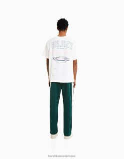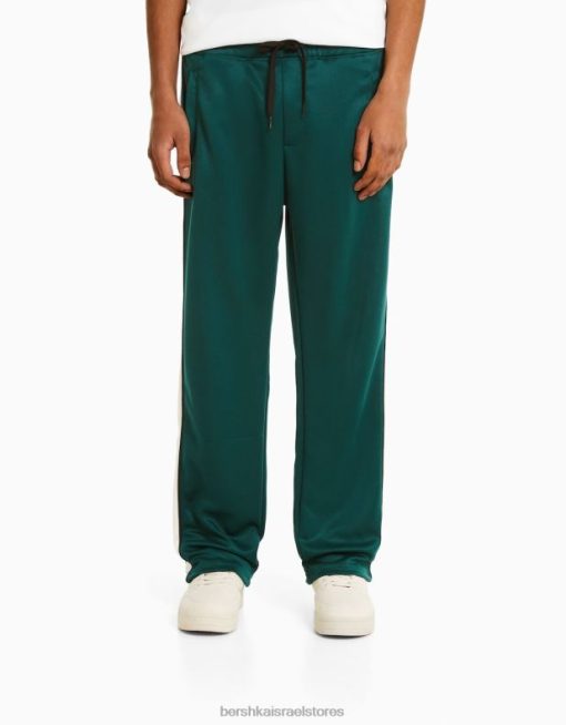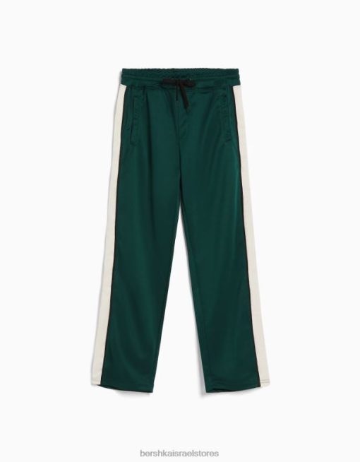 גברים מכנסיים רחבים עם פסי צד שלובים ירוק 2L6JD3236 Bershka הַלבָּשָׁה