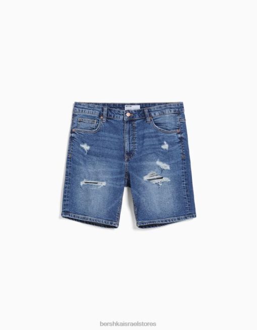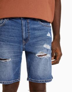 גברים מכנסי ברמודה ג’ינס קרועים כְּחוֹל 2L6JD3339 Bershka הַלבָּשָׁה