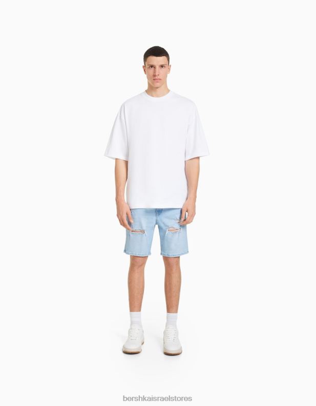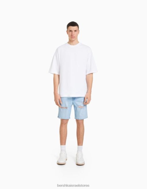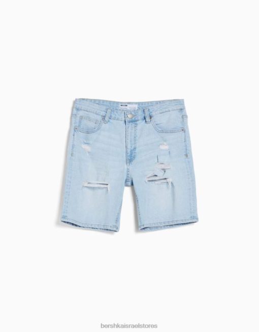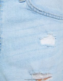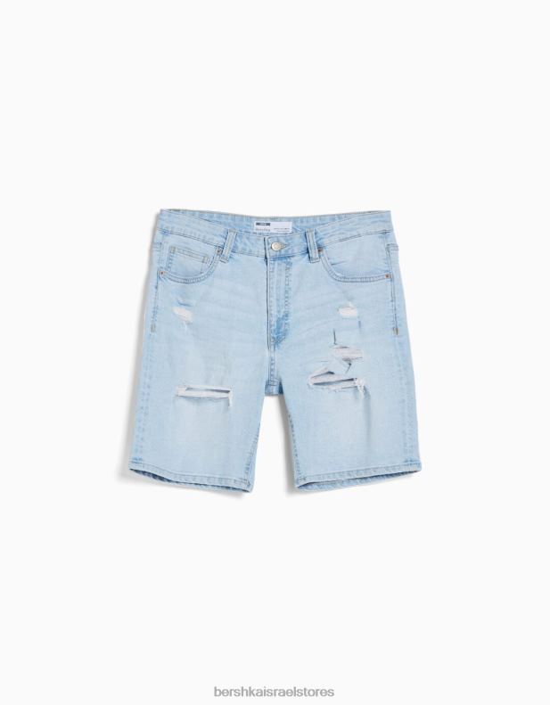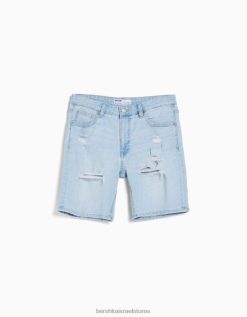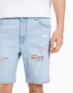 גברים מכנסי ברמודה ג’ינס קרועים כחול בהיר 2L6JD3340 Bershka הַלבָּשָׁה