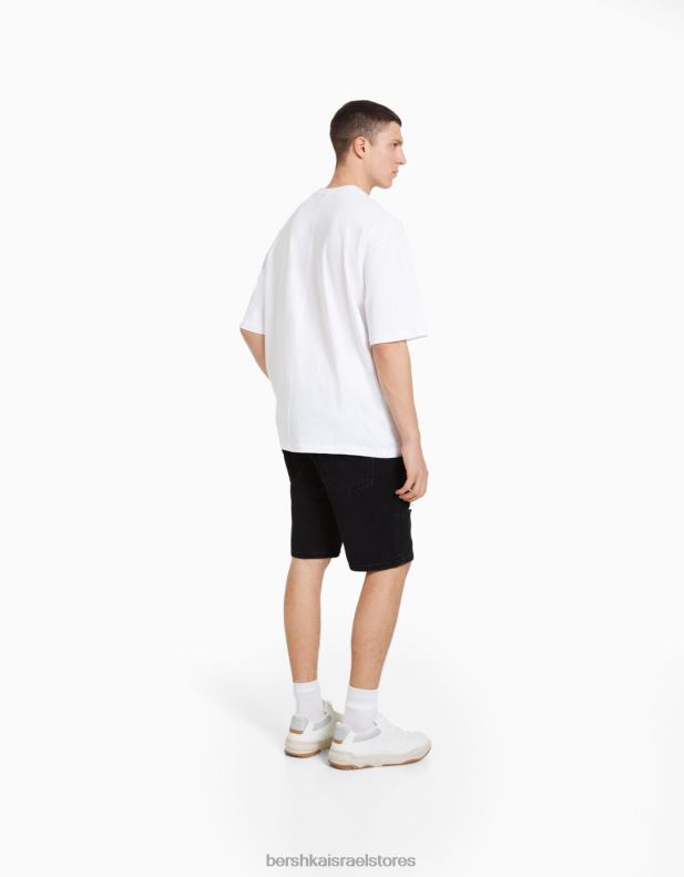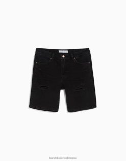גברים מכנסי ברמודה ג’ינס קרועים שָׁחוֹר 2L6JD3341 Bershka הַלבָּשָׁה