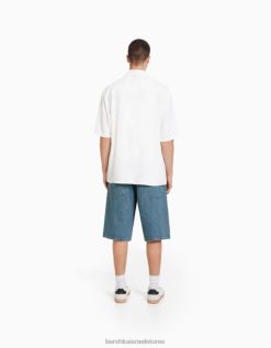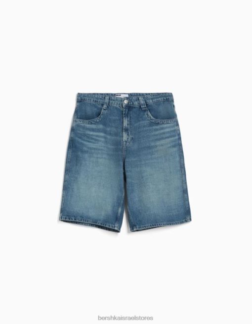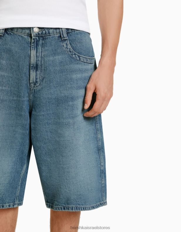 גברים מכנסי ברמודה ג’ינס רחבים נשטף כחול 2L6JD3337 Bershka הַלבָּשָׁה