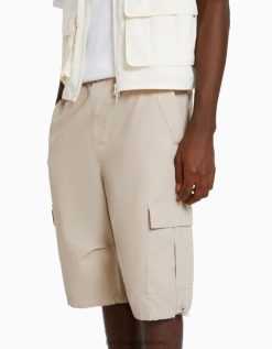 גברים מכנסי ברמודה פופלין מצנח חוֹל 2L6JD3281 Bershka הַלבָּשָׁה