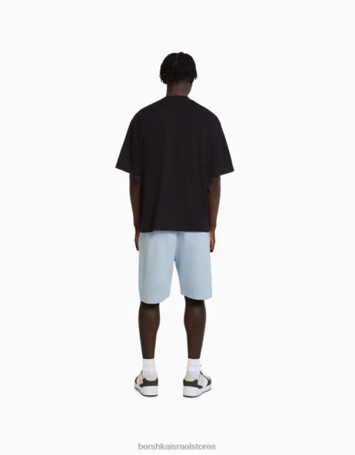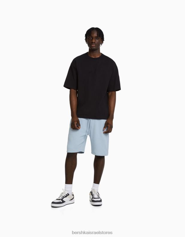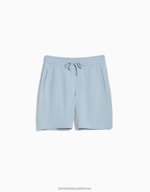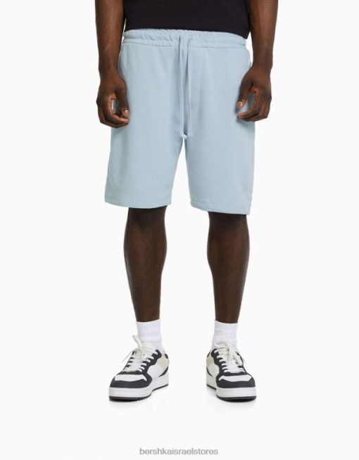 גברים מכנסי ברמודה קטיפה בסיסיים כחול בהיר 2L6JD3319 Bershka הַלבָּשָׁה