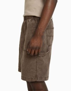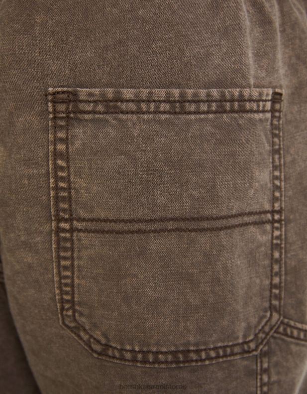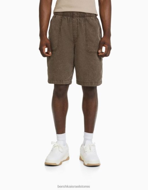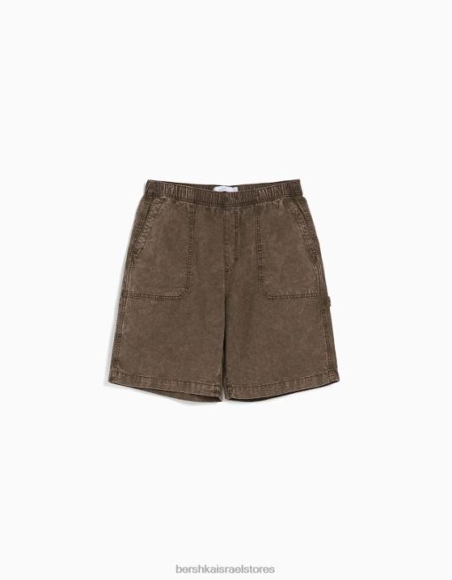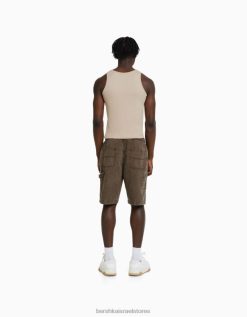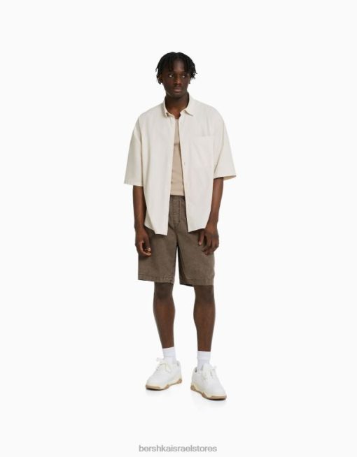 גברים מכנסי ברמודה קצרים בשילוב כותנה ופשתן גָמָל 2L6JD3359 Bershka הַלבָּשָׁה