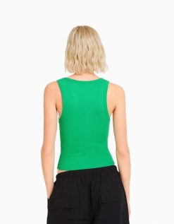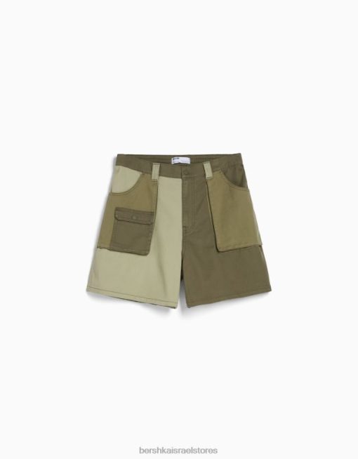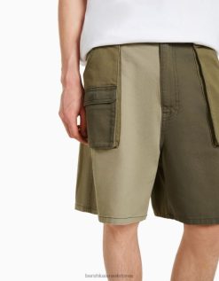 גברים מכנסי ברמודה קצרי ברמודה בלוק ג’ינס ירוק 2L6JD3300 Bershka הַלבָּשָׁה