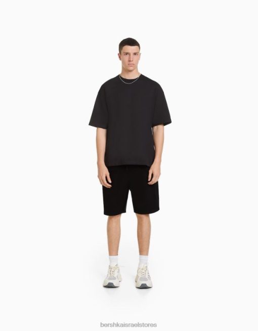 גברים מכנסי טרנינג ברמודה שָׁחוֹר 2L6JD3354 Bershka הַלבָּשָׁה