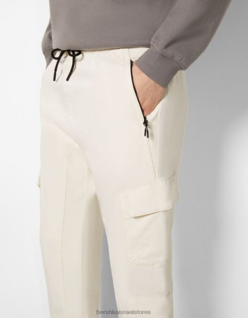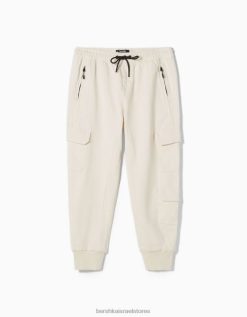 גברים מכנסי טרנינג דקים מטען צבע קרם 2L6JD3226 Bershka הַלבָּשָׁה