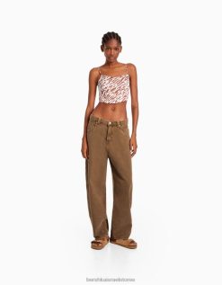 גברים מכנסי טרנינג קטיפה גָמָל 2L6JD3268 Bershka הַלבָּשָׁה