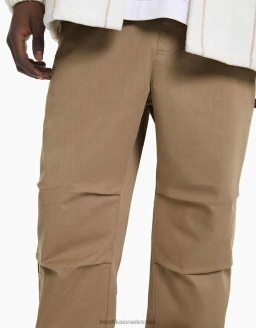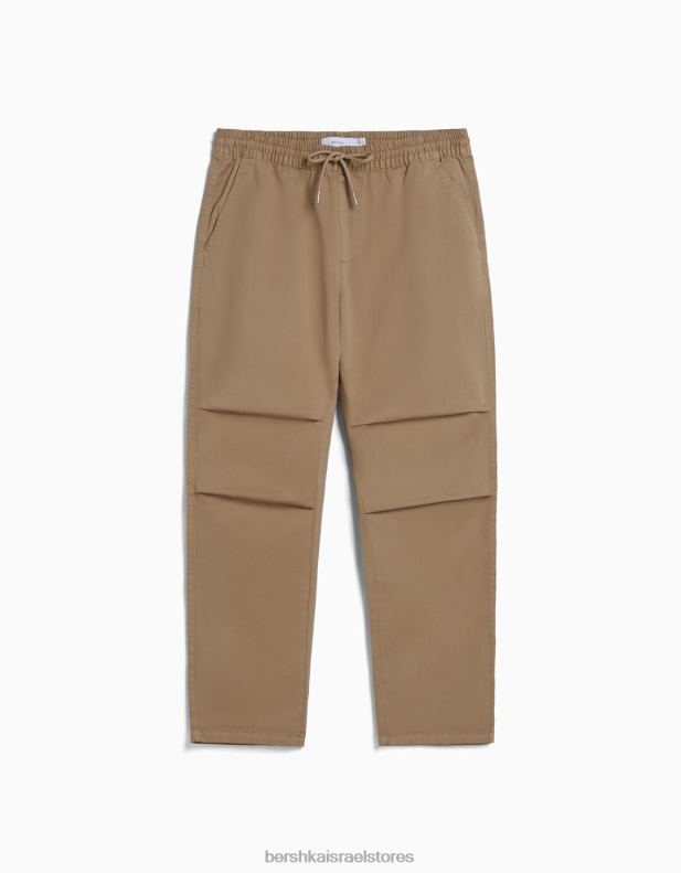 גברים מכנסי כותנה בגזרה רפויה גָמָל 2L6JD3275 Bershka הַלבָּשָׁה