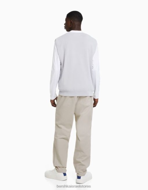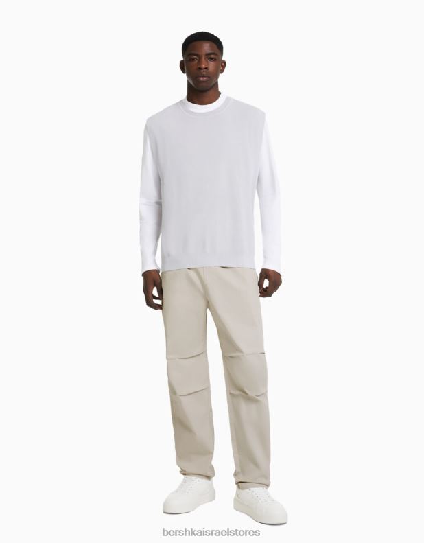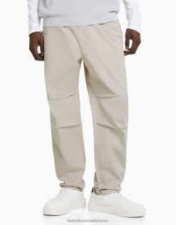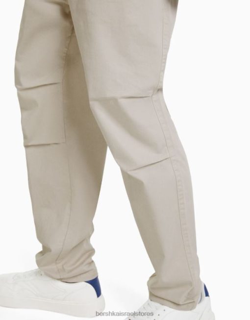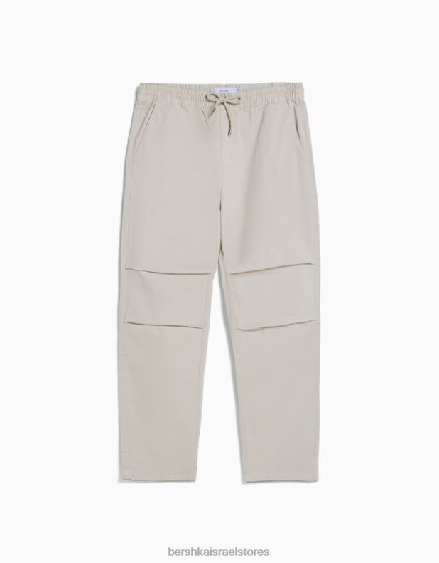 גברים מכנסי כותנה בגזרה רפויה חוֹל 2L6JD3452 Bershka הַלבָּשָׁה