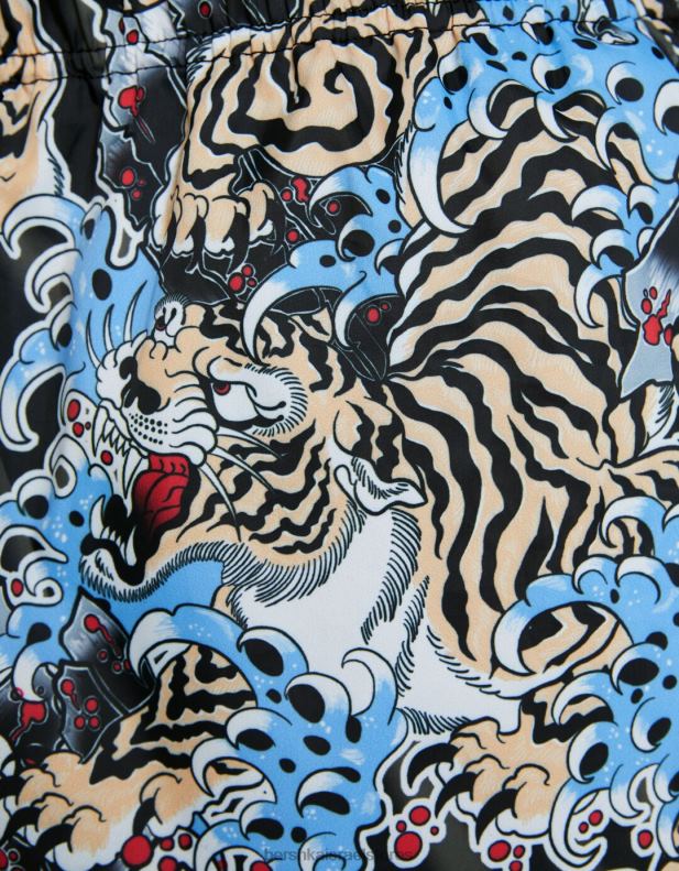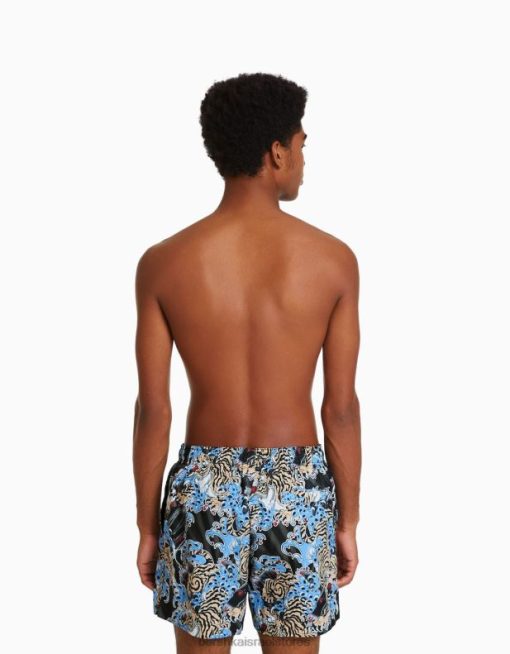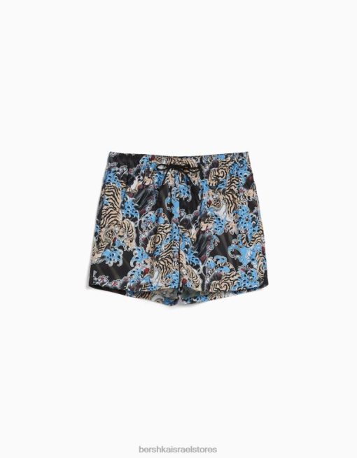 גברים מכנסי לוח עם הדפס נמר שָׁחוֹר 2L6JD3406 Bershka הַלבָּשָׁה