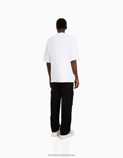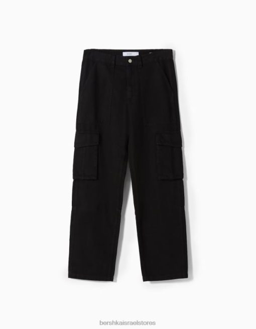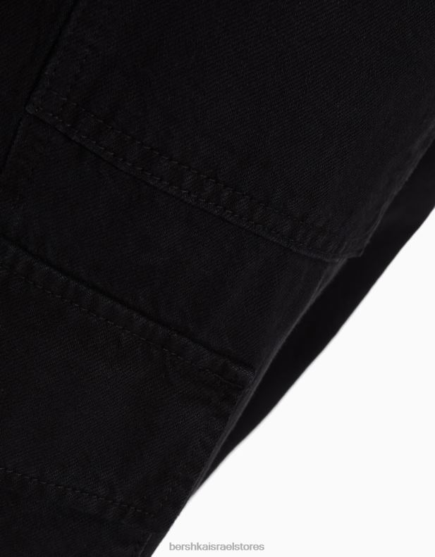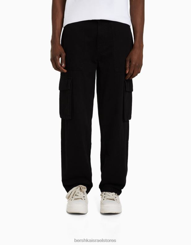 גברים מכנסי מטען מכותנה עם רגליים רחבות שָׁחוֹר 2L6JD3245 Bershka הַלבָּשָׁה