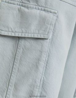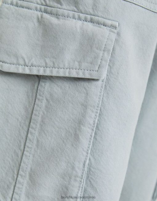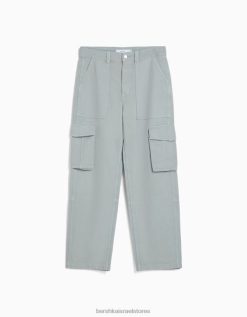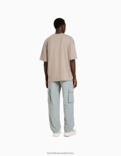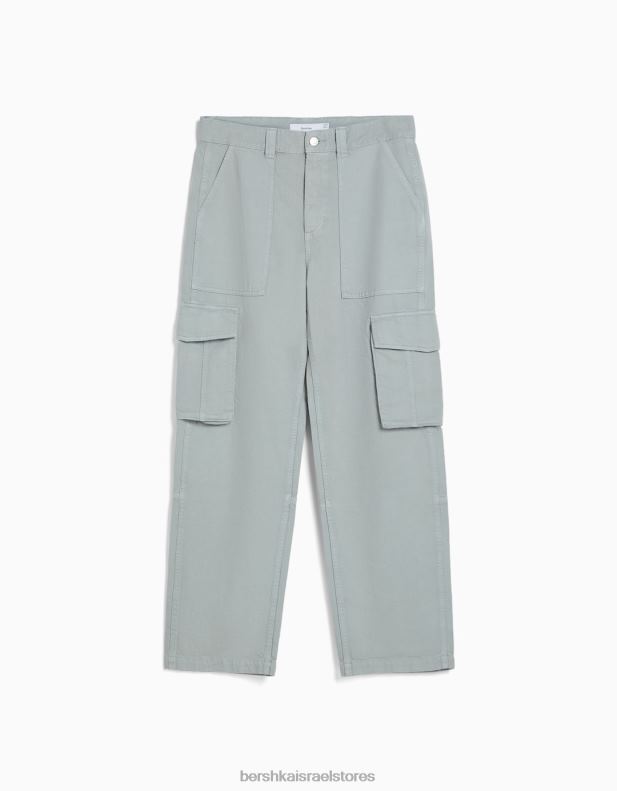 גברים מכנסי מטען מכותנה עם רגליים רחבות ירוק 2L6JD3246 Bershka הַלבָּשָׁה