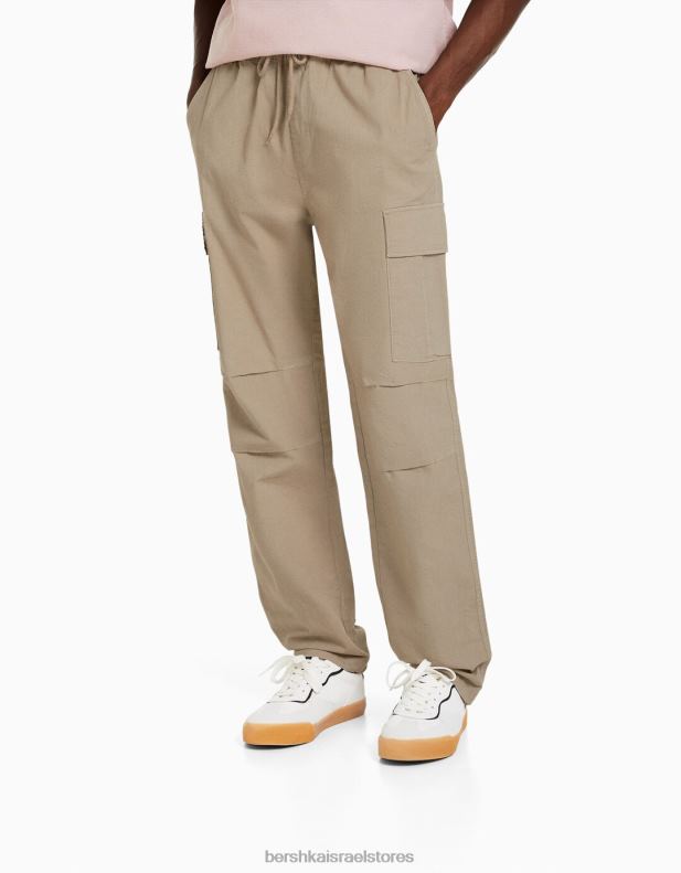 גברים מכנסי מטען עם פקקים חוֹל 2L6JD3228 Bershka הַלבָּשָׁה