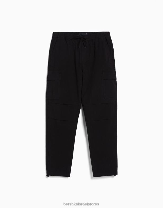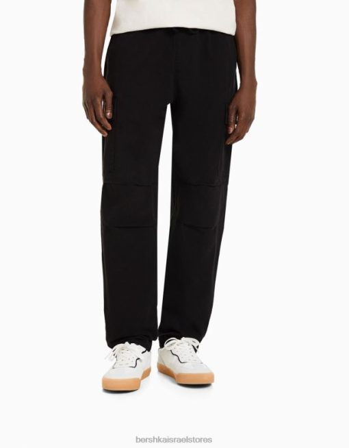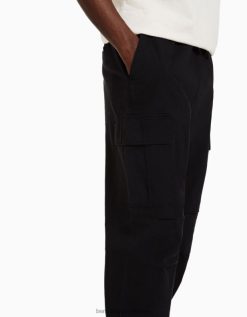גברים מכנסי מטען עם פקקים שָׁחוֹר 2L6JD3231 Bershka הַלבָּשָׁה