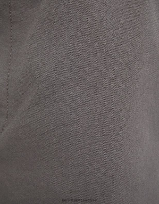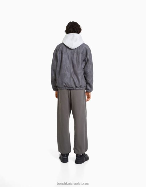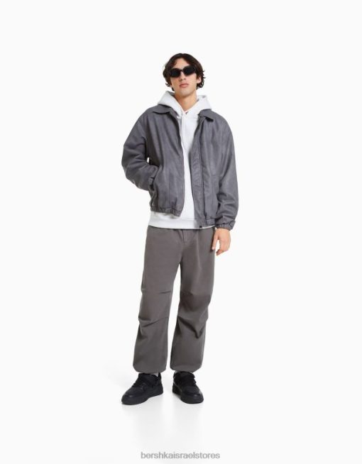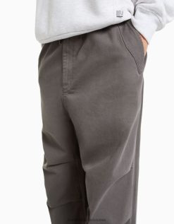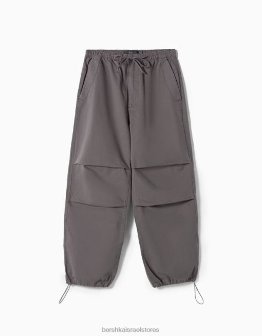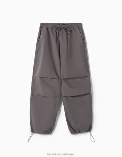 גברים מכנסי מצנח כותנה אפור 2L6JD3220 Bershka הַלבָּשָׁה