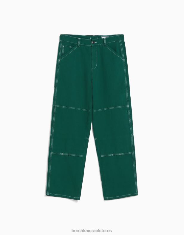 גברים מכנסי נגר מכותנה ירוק 2L6JD3235 Bershka הַלבָּשָׁה