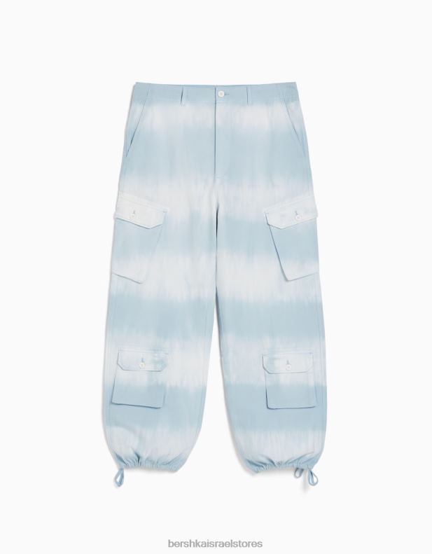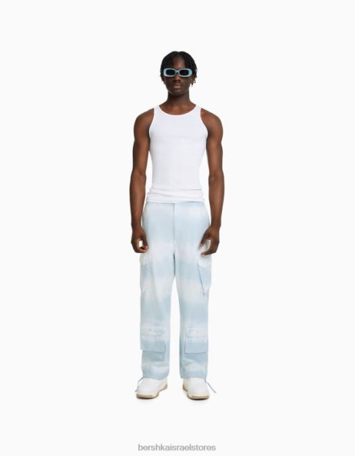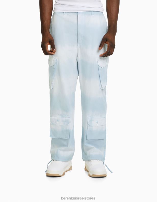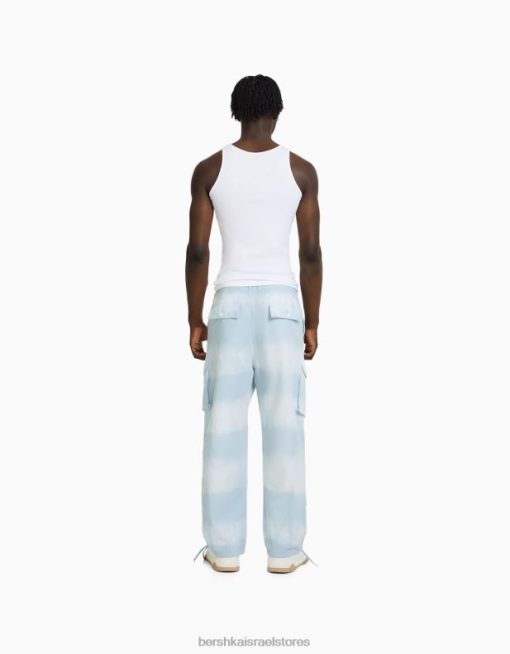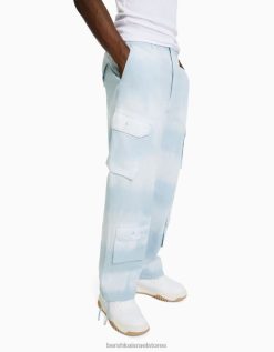 גברים מכנסי קרגו מעונבים מכותנה כְּחוֹל 2L6JD3265 Bershka הַלבָּשָׁה