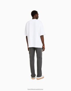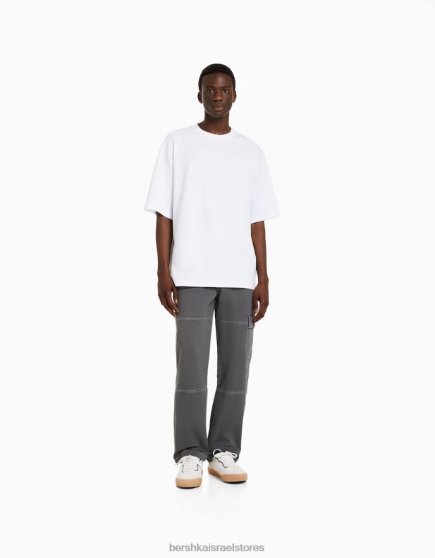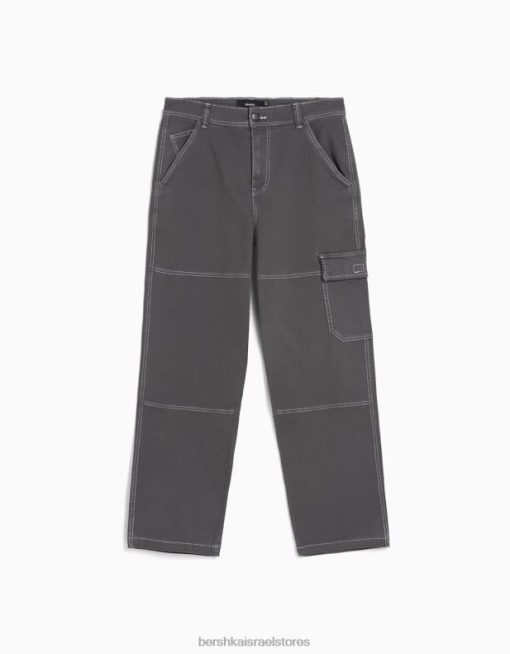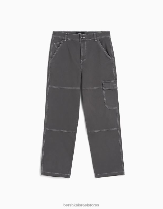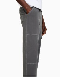 גברים מכנסי קרגו רחבים עם תפרים מנוגדים אפור כהה 2L6JD3249 Bershka הַלבָּשָׁה
