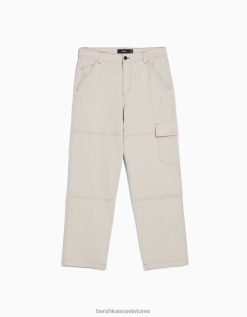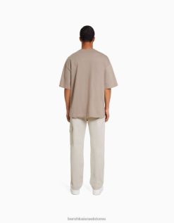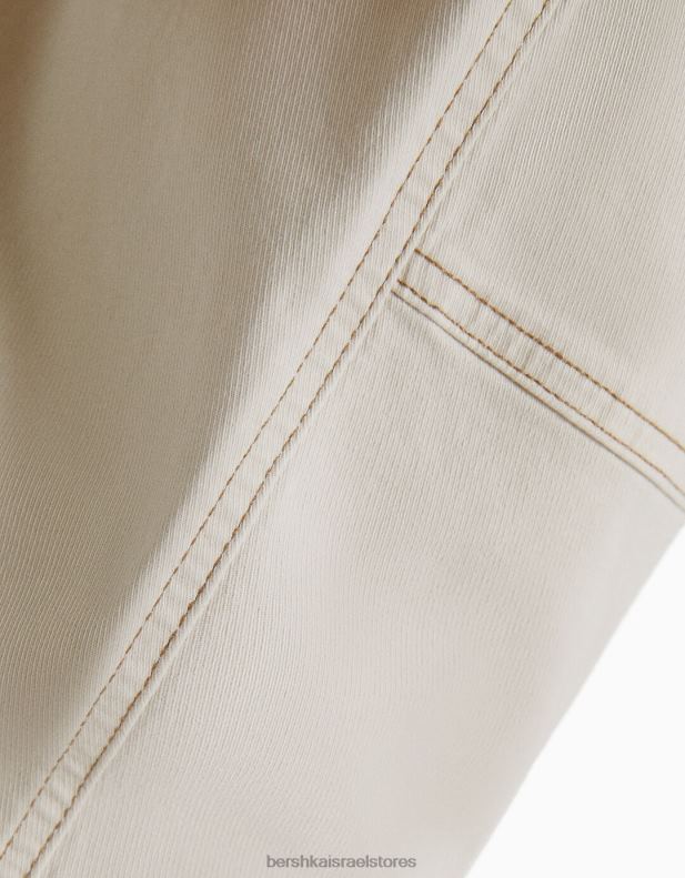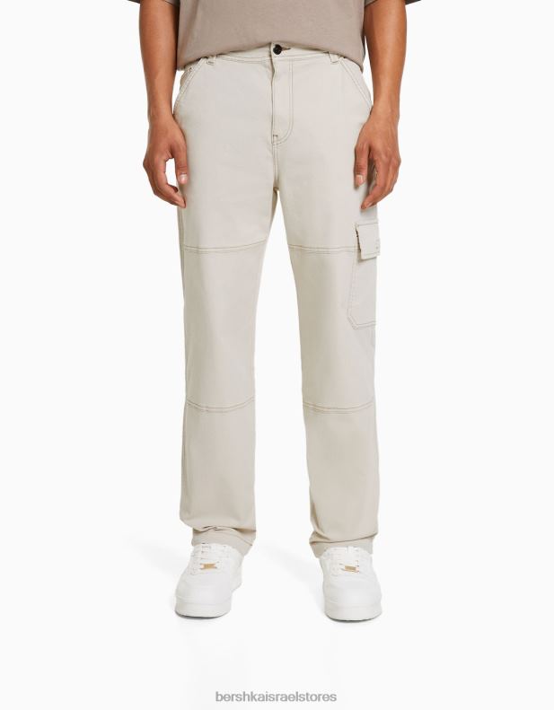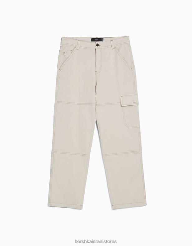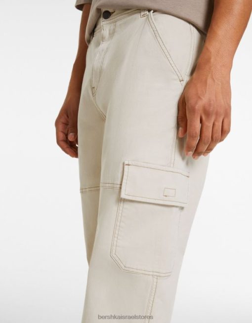 גברים מכנסי קרגו רחבים עם תפרים מנוגדים קרם 2L6JD3250 Bershka הַלבָּשָׁה