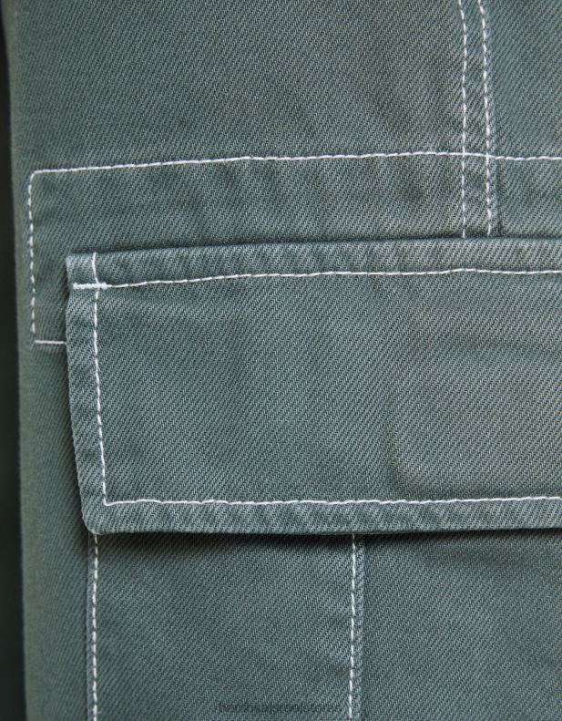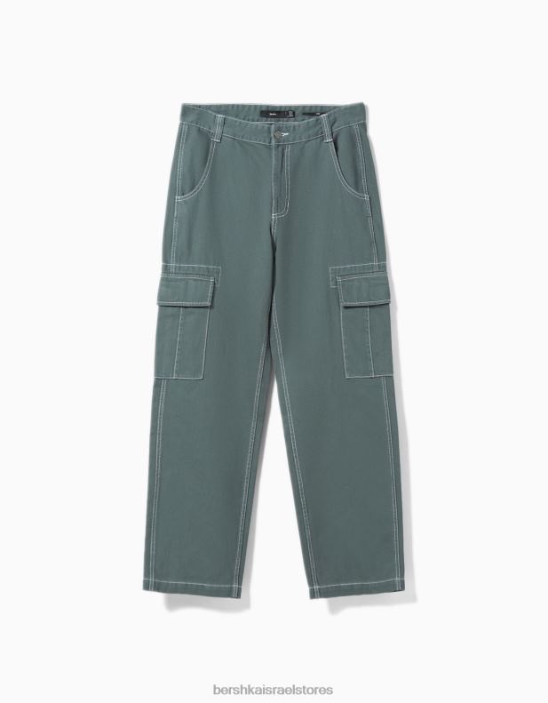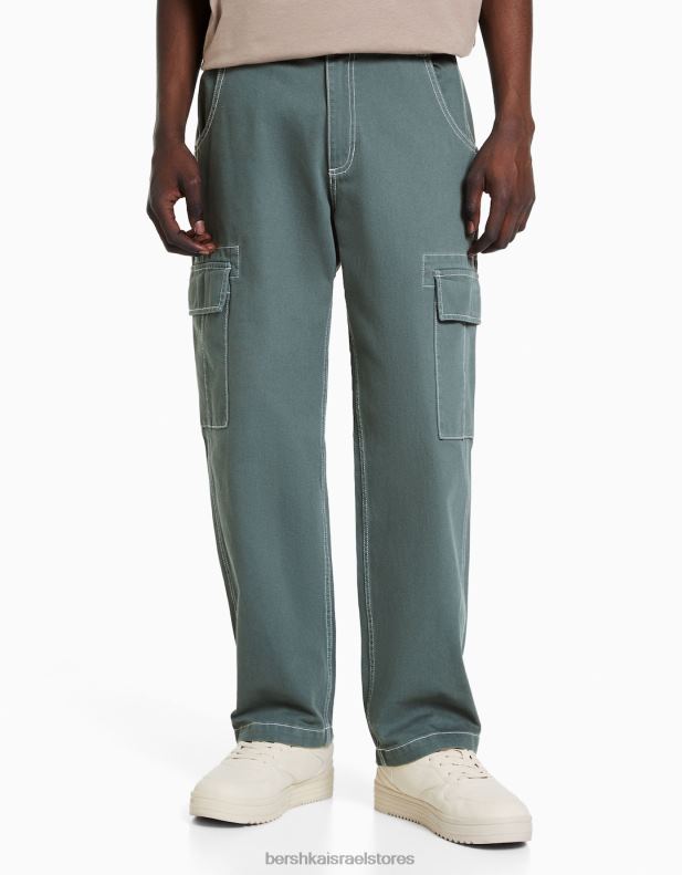 גברים מכנסי קרגו רחבים עם תפרים מנוגדים כְּחוֹל 2L6JD3257 Bershka הַלבָּשָׁה