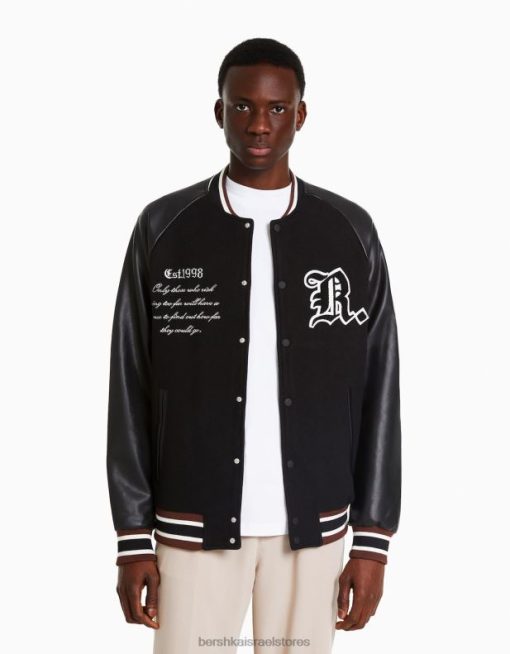 גברים מעיל בומבר מבד כבד ועור מלאכותי שָׁחוֹר 2L6JD3093 Bershka הַלבָּשָׁה