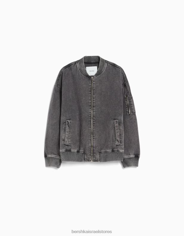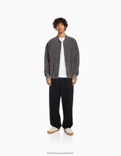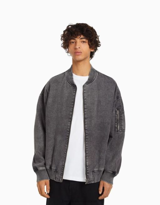 גברים מעיל בומבר מכותנה אפור כהה 2L6JD3103 Bershka הַלבָּשָׁה
