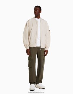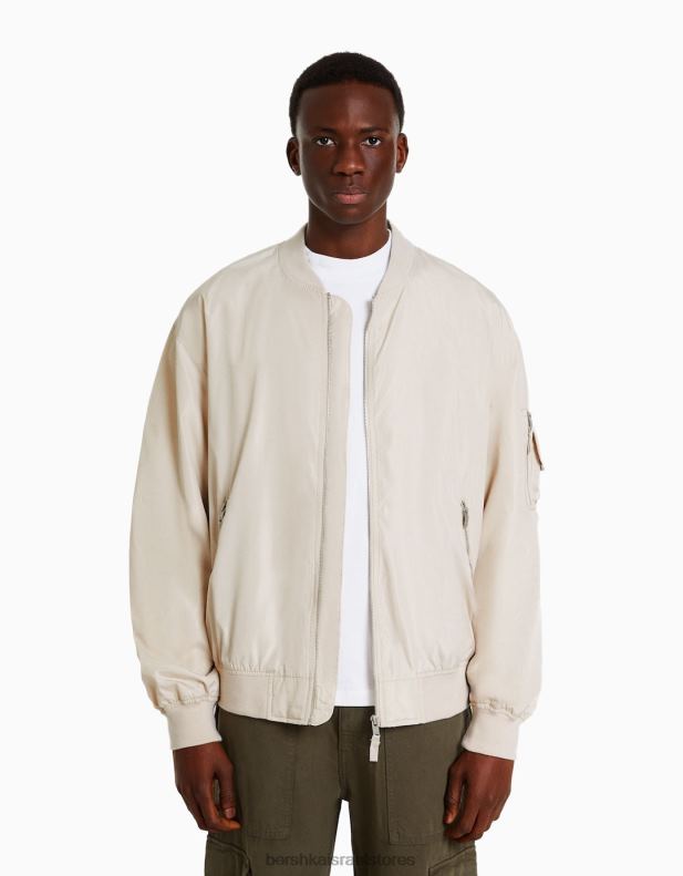 גברים מעיל בומבר קל צבע קרם 2L6JD3052 Bershka הַלבָּשָׁה
