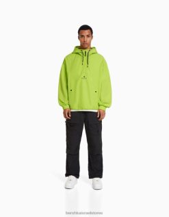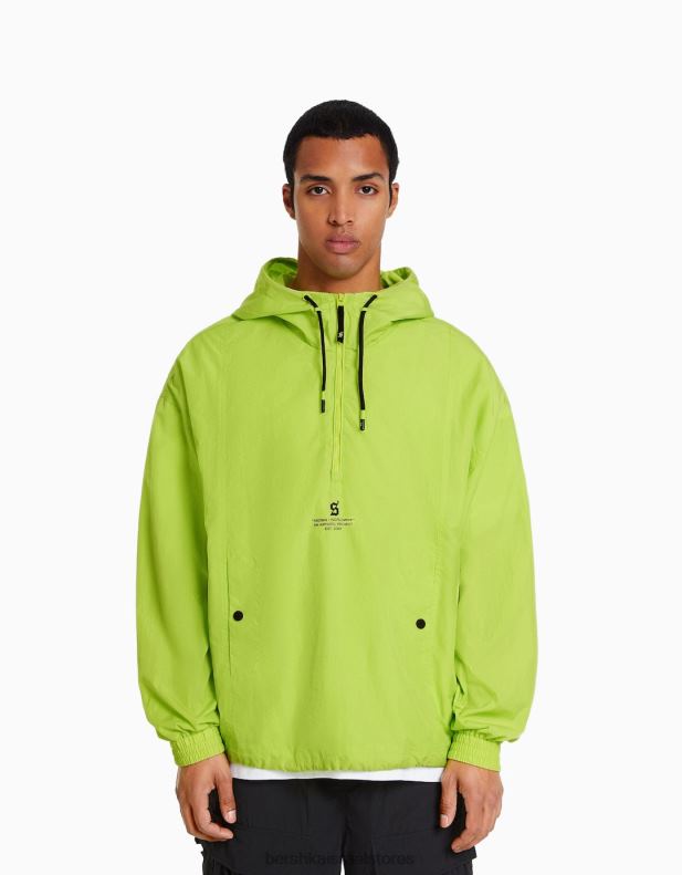 גברים מעיל קפוצ’ון ניילון דק ליים 2L6JD3074 Bershka הַלבָּשָׁה