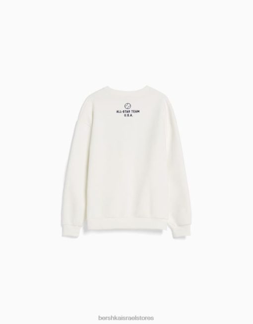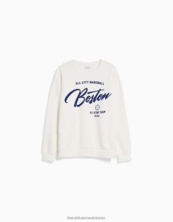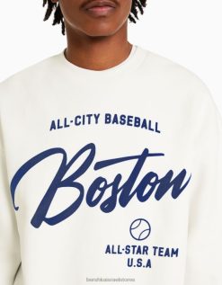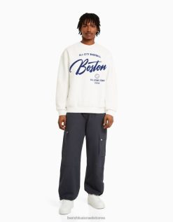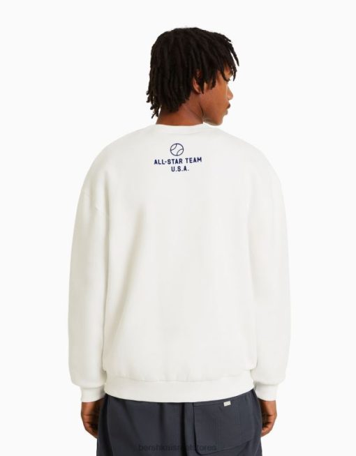 גברים סווטשירט מודפס אוברסייז לבן 2L6JD2985 Bershka הַלבָּשָׁה