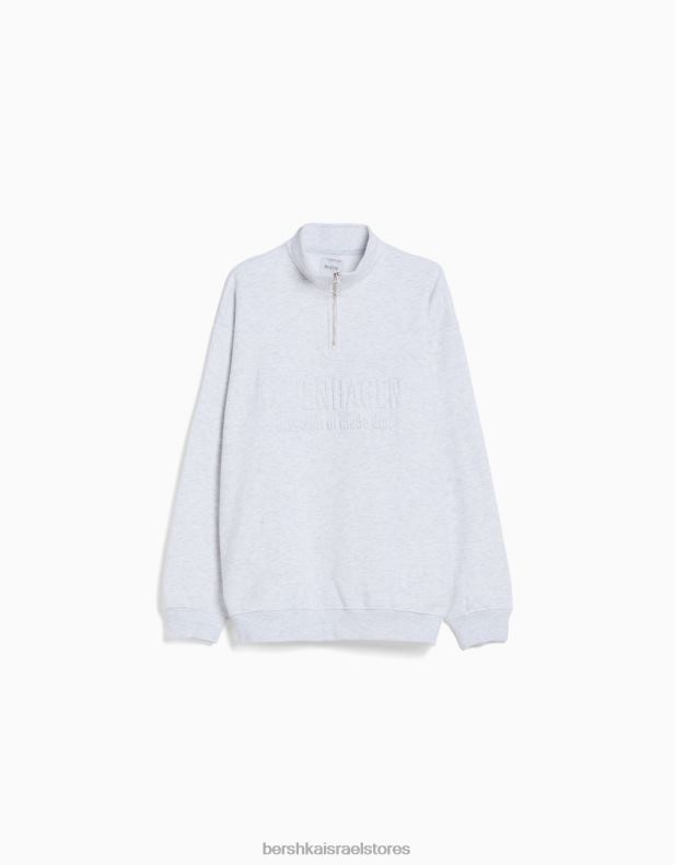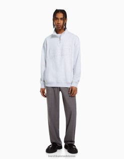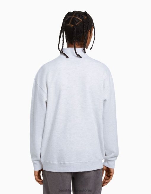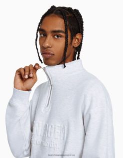 גברים סווטשירט עם צווארון גבוה עם רוכסן אפור 2L6JD2965 Bershka הַלבָּשָׁה