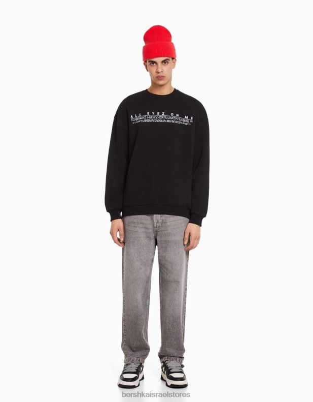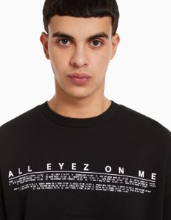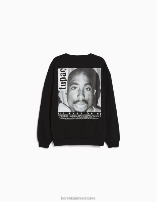 גברים סווטשירט עם צווארון טופאק שָׁחוֹר 2L6JD2971 Bershka הַלבָּשָׁה