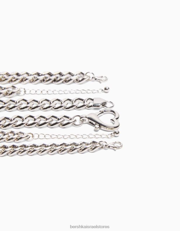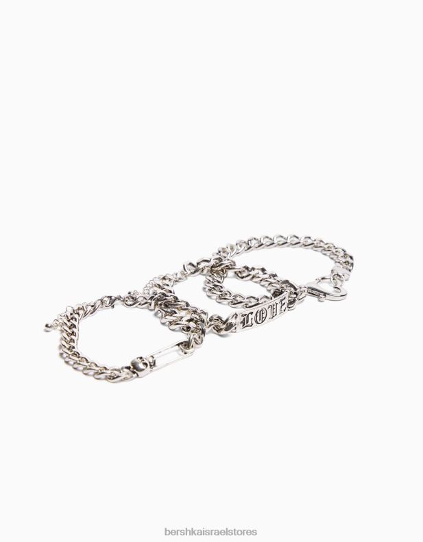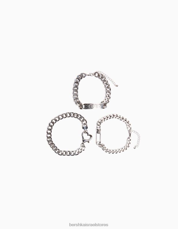 גברים סט של 3 צמידי שרשרת כסף 2L6JD3655 Bershka אביזרים