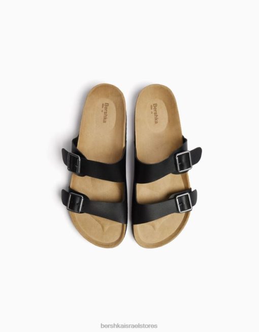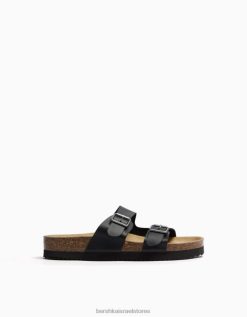גברים סנדלי עור עם אבזמים שָׁחוֹר 2L6JD3538 Bershka הַנעָלָה